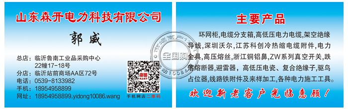 环网柜,电缆分支箱,高低压电力电缆,架空绝缘导线,深圳沃尔,江苏科创冷热缩电缆附件,电力金具,高压熔丝,浙江铜铝鼻,ZW系列真空开关,跌落熔断器,避雷器,高低压电瓷、复合绝缘子,驱鸟占位器,线路铁附件及来样加工,各种电力施工工具。欢迎新老客户光临惠顾!
